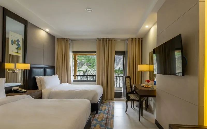 The hotel offers many accommodations, from Deluxe Rooms to spacious Suites, ensuring a comfortable stay for all travellers. The contemporary rooms feature king or twin beds, ensuite bathrooms, workspace, and private balconies so you can enjoy scenic vistas.