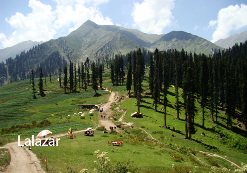 Lalazar is a meadow surrounded by forests of pine and fir trees, full of wildflowers. It is located 13 kilometers from Naran and has an elevation of approximately 10,446 feet. Tourists can easily get there by renting a jeep and enjoying the view of the snow-capped mountain tops of Sal Farrak. Lalazar has a shallow temperature in the middle of the mountain.